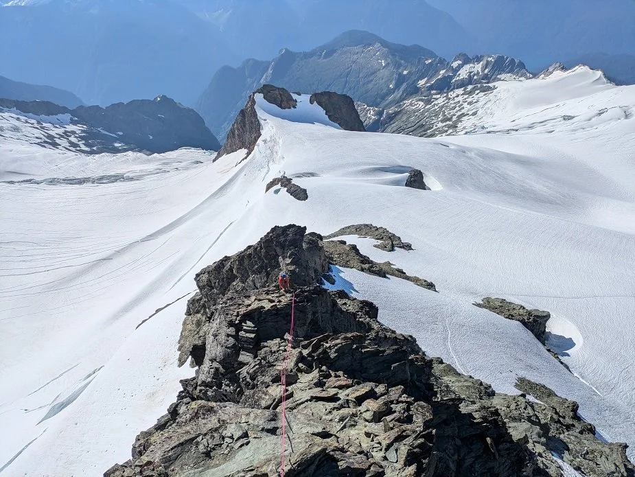 After reaching the top of Hells Highway. Looking towards the summit pyramid. You can see some fellow climbers coming from the Sulphide.